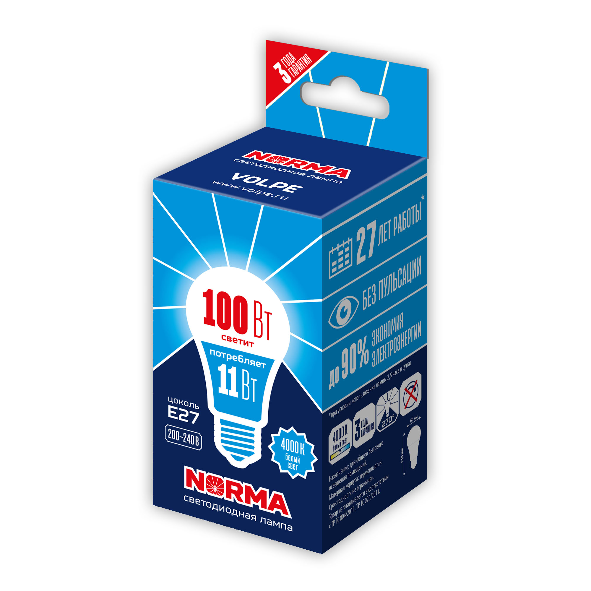 - Эквивалентная мощность лампы накаливания, Вт 100