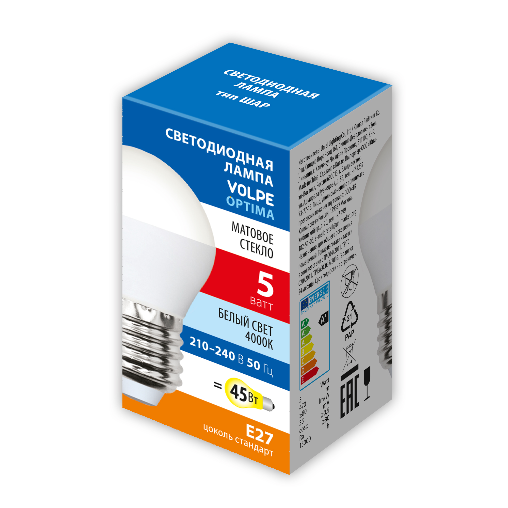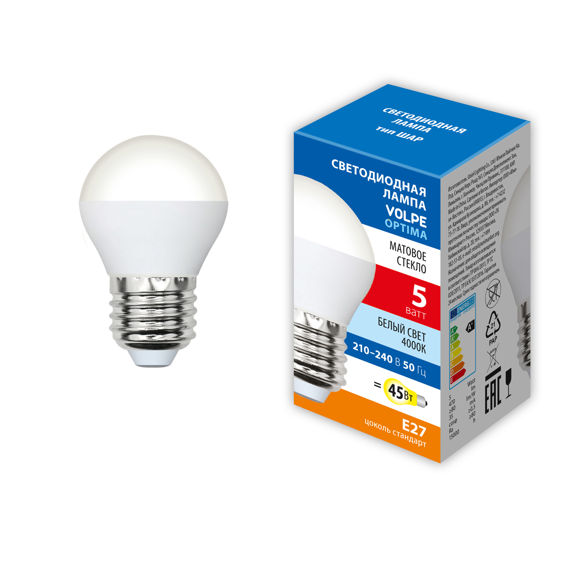 - Наименование для инвойса LED-G45-5W/4000K/E27/FR/SLS