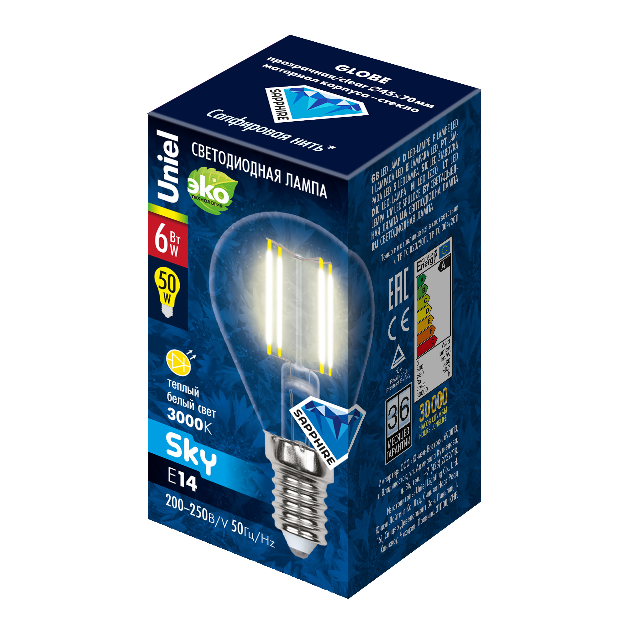 - Наименование для инвойса LED-G45-6W/WW/E14/CL PLS02WH
